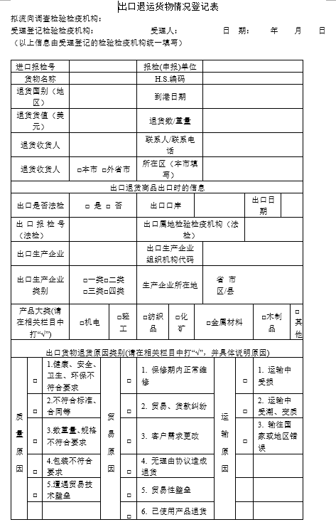 貨物退運(yùn)情況登記表(模板)