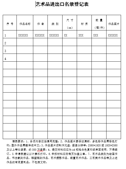 藝術(shù)品進出口名錄登記表(模板)