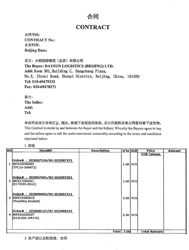 進(jìn)口報(bào)關(guān)合同(樣例)