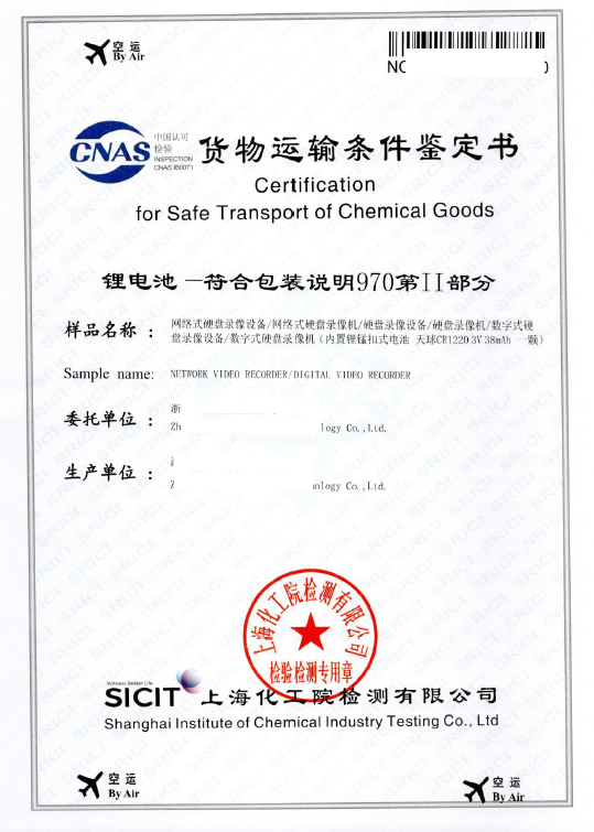 《貨物運(yùn)輸條件鑒定書(shū)-鋰電池》(樣例)