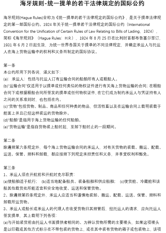 海牙規(guī)則-統(tǒng)一提單的若干法律規(guī)定的國(guó)際公約